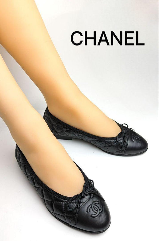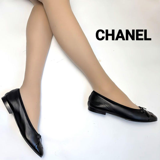新品そっくりさん⭐CHANELシャネル ラムスキン バレエシューズ 37.5C黒