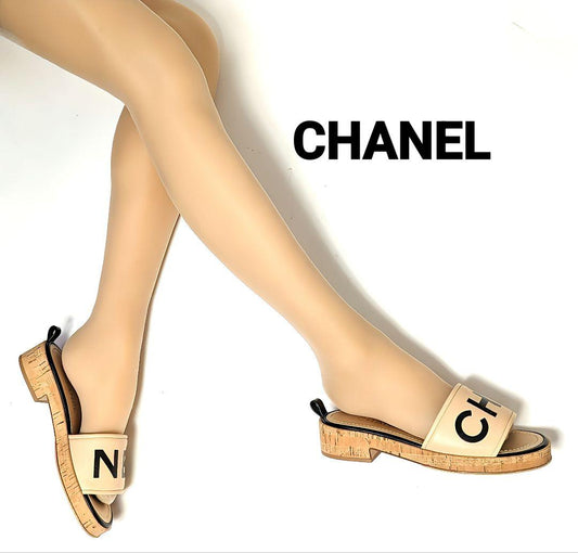新品そっくりさん⭐CHANELシャネル コルクソール ロゴサンダル 36C