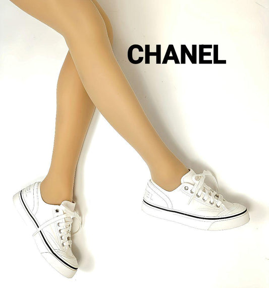 新品そっくりさん⭐CHANELシャネル デニム ホワイトスニーカー36