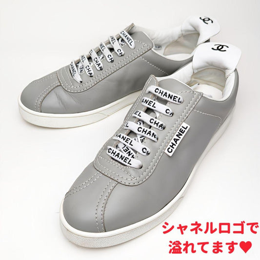完売人気ピカピカ新品仕上⭐CHANELシャネル ロゴスニーカー36 1/2グレー