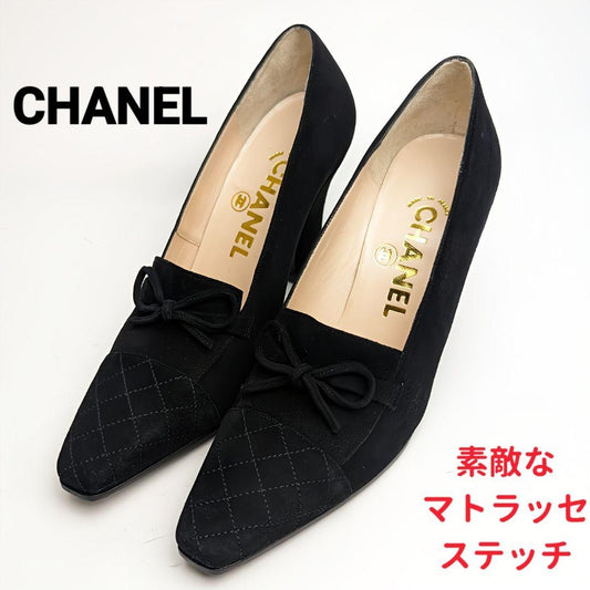 未使用美品♥シャネルCHANEL スエード リボンパンプス36 1/2ブラック