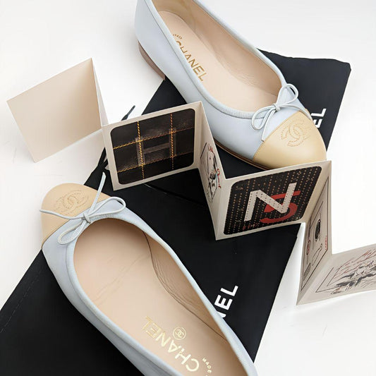 ピカピカ新品仕上⭐CHANELシャネル バレエシューズ水色&ベージュ36 1/2