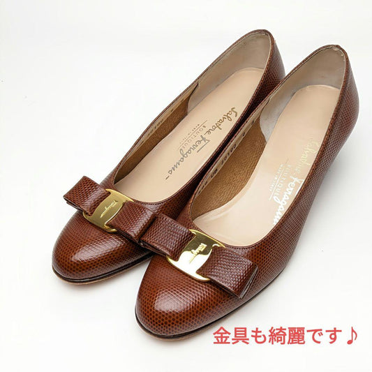 ピカピカ新品仕上げ⭐フェラガモ ヴァラリザード型押パンプス ブラウン 6B