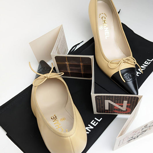 未使用美品♥CHANELビンテージシャネル バイカラ―リボンパンプス35 1/2