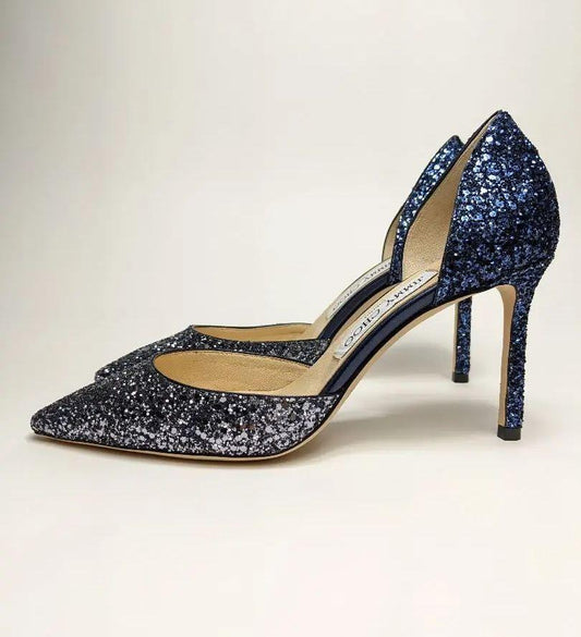 未使用極上美品❤ジミーチュウ グリッターパンプス ブライダル 23.5 ブルー