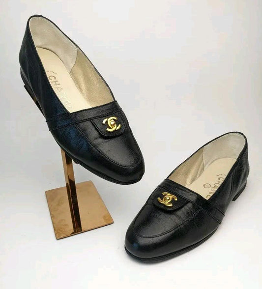 新品仕上⭐レアビンテージシャネルCHANELターンロックラムスキンパンプス約23