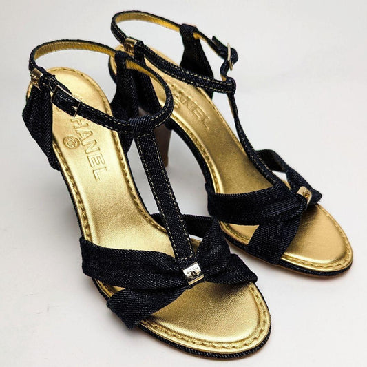 未使用同様美品❤CHANELシャネル デニム ストラップサンダル 36Cゴールド